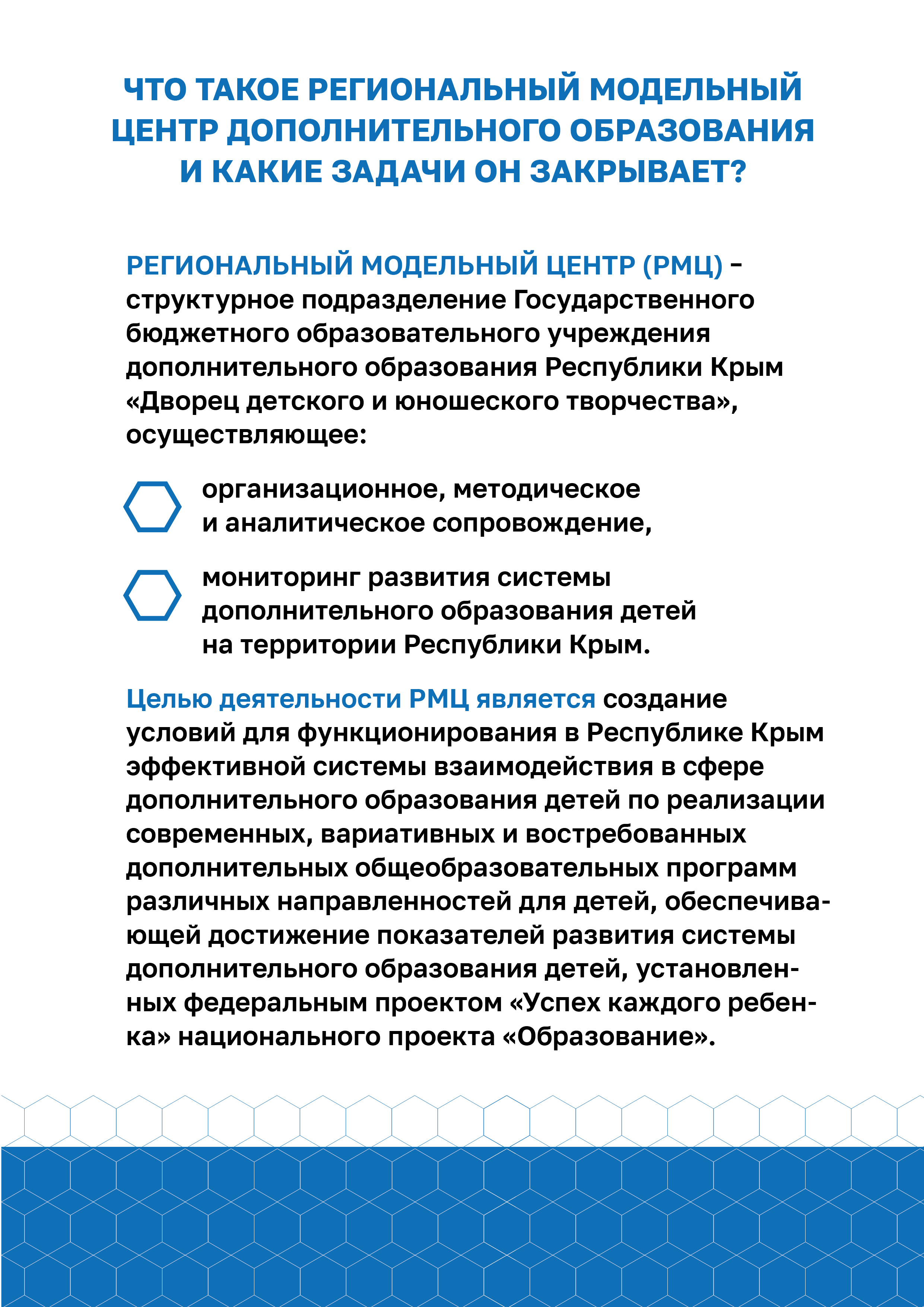 Навигатор представляет собой единый национальный портал дополнительного образования детей, в котором есть федеральный и региональные разделы. Он работает при поддержке Министерств образования субъектов РФ, содержит следующую информацию: